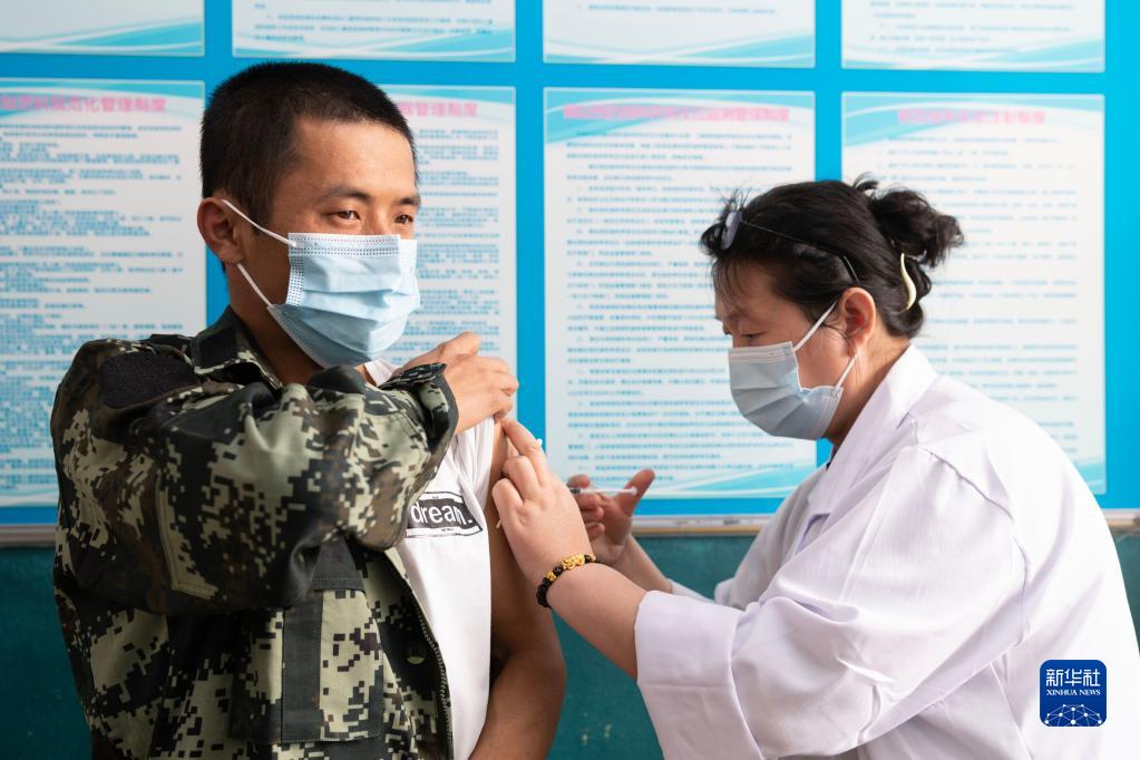 3月21日,在中國龍江森工集團沾河林業(yè)局有限公司職工醫院,王劉洋(左)在接種森林腦炎疫苗。