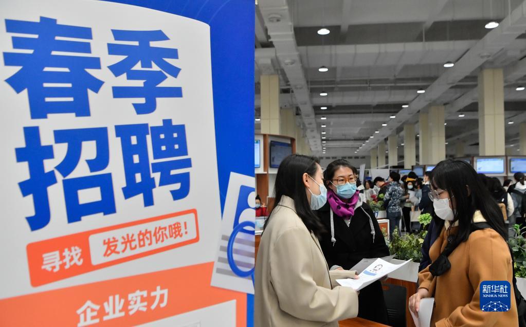 3月25日,在中國(天津)人力資源發(fā)展促進(jìn)中心,招聘企業(yè)工作人員與求職者交流。