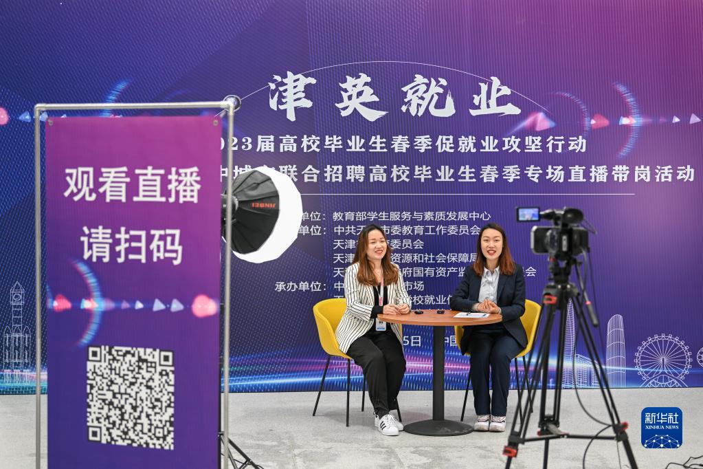 3月25日,在中國(天津)人力資源發(fā)展促進(jìn)中心,中國北方人才市場(chǎng)中天人力工作人員與招聘企業(yè)負責人以線(xiàn)上直播的方式為求職者提供服務(wù)。