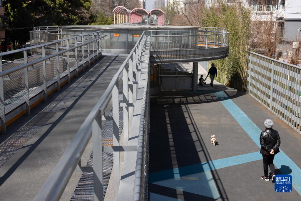 3月13日,市民在位于上海市普陀區的高線(xiàn)公園——百禧公園散步。