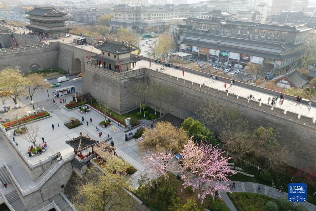 近日,陜西西安明城墻旁春意漸濃,吸引不少市民游客前來(lái)踏青。
