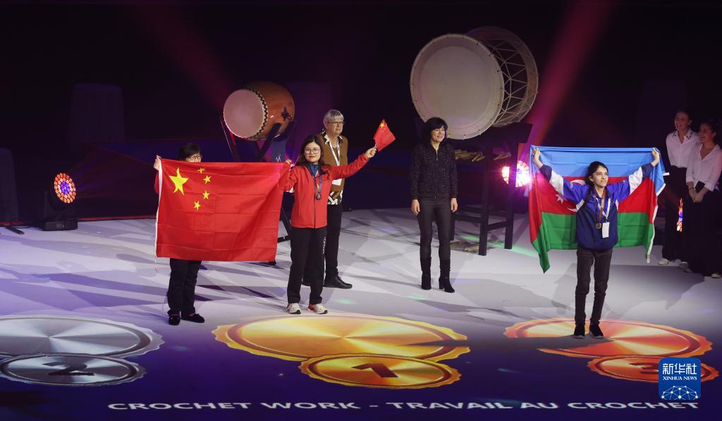 3月25日,在法國梅斯舉行的第十屆國際殘疾人職業(yè)技能競賽中,在鉤針編織比賽中分獲冠亞軍的中國選手胡春芳(左二)和沙紅英(左一)上臺領(lǐng)獎。