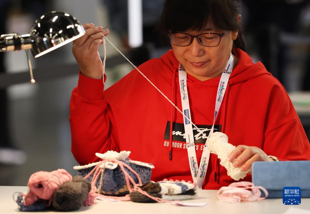 3月25日,在法國梅斯舉行的第十屆國際殘疾人職業(yè)技能競賽中,最終獲得亞軍的中國選手沙紅英參加鉤針編織比賽。