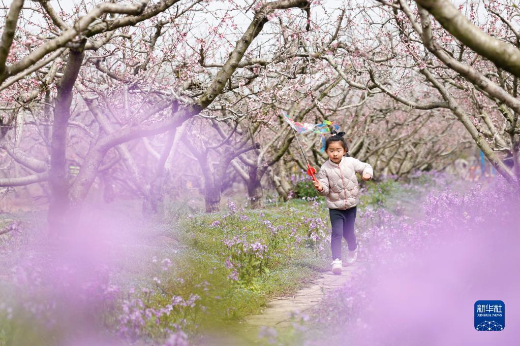 3月26日,一名小朋友在江蘇省宿遷市泗洪縣朱湖鎮一處休閑度假區桃園里玩耍。