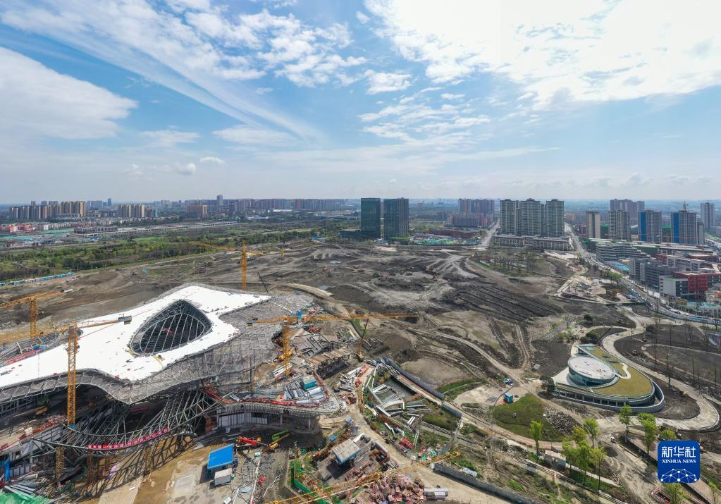 這是3月27日在四川省成都市郫都區拍攝的世界科幻公園建設現場(chǎng)(無(wú)人機照片)。