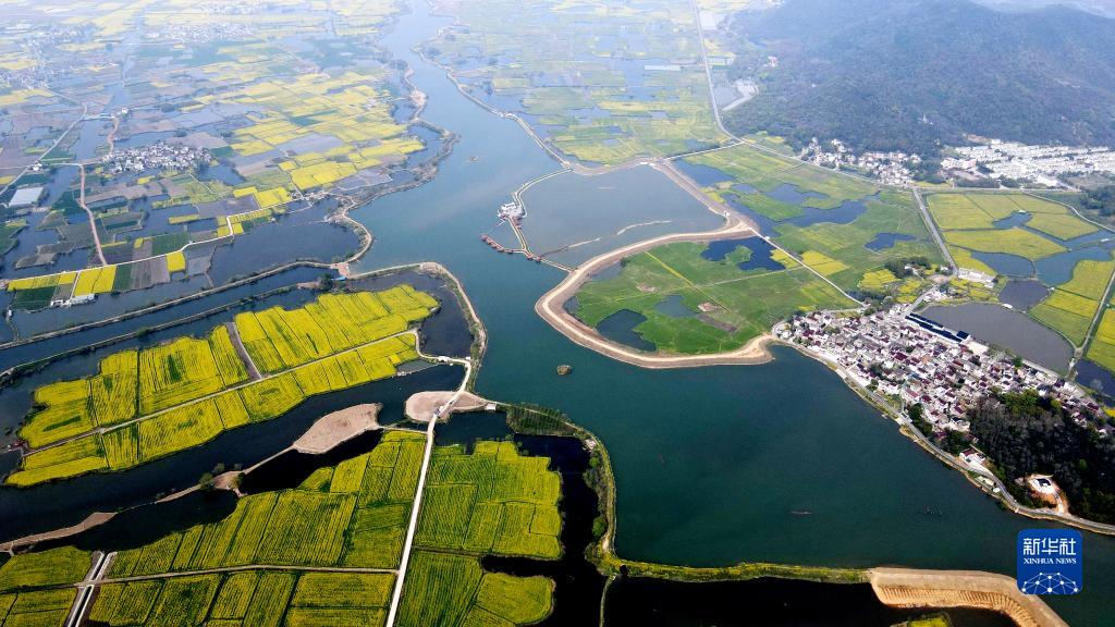 近日,安徽省蕪湖市三山區峨橋鎮響水澗村的油菜花迎來(lái)盛花期。金黃的油菜花田錯落有致分布于鄉間水道旁,形成一幅幅美麗的鄉村畫(huà)卷。