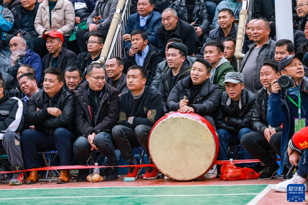 3月27日,觀(guān)眾在場(chǎng)邊擊鼓助興。