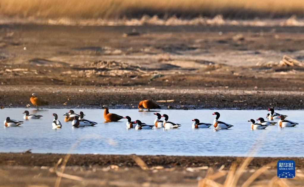 3月27日,候鳥(niǎo)在孟家段國家濕地公園覓食。