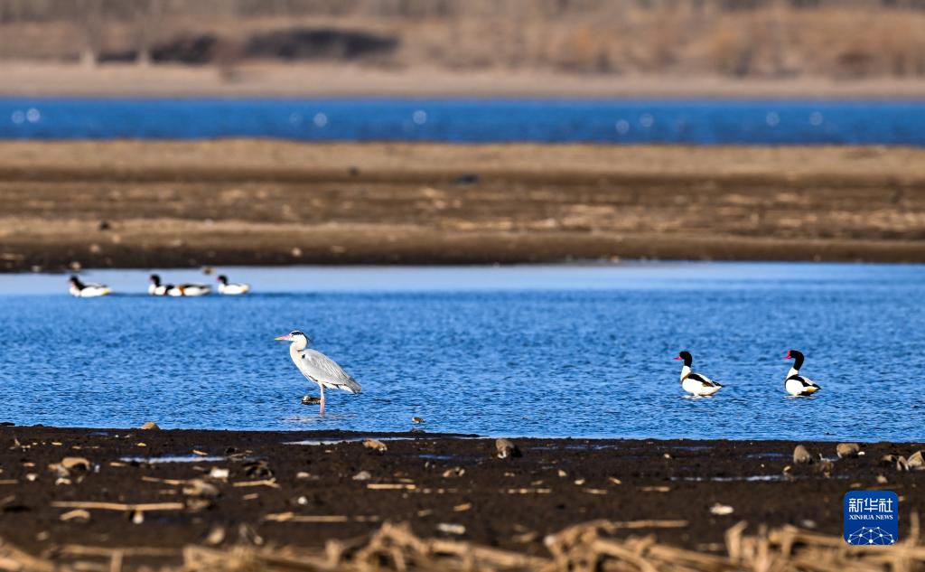 3月27日,候鳥(niǎo)在孟家段國家濕地公園覓食。