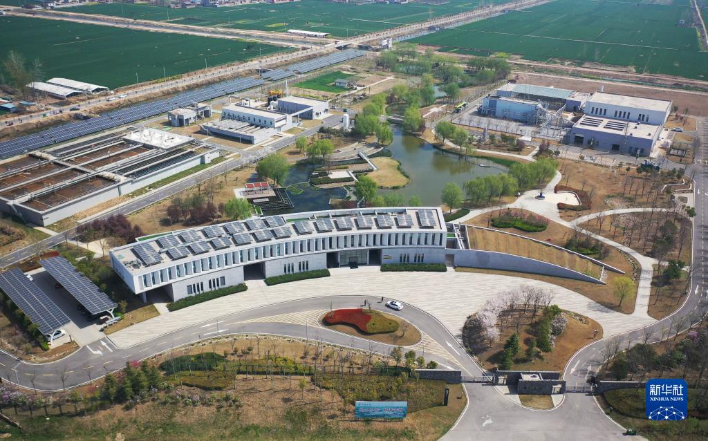 這是3月28日在河南省商丘市睢縣拍攝的睢縣第三污水處理廠(chǎng)(無(wú)人機照片)。