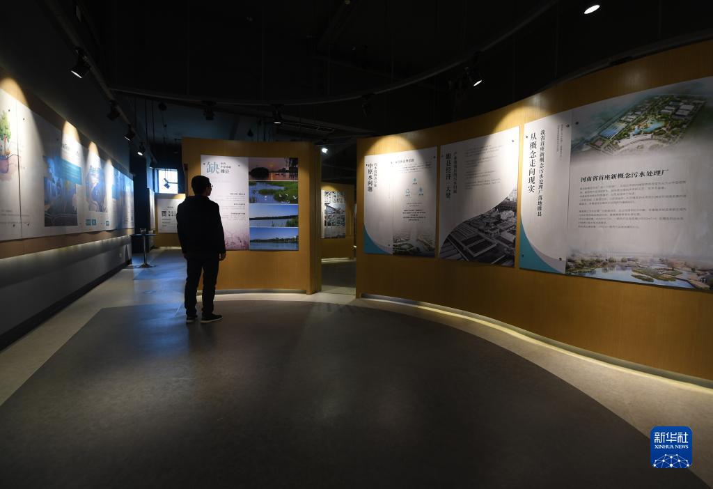 3月28日,在睢縣第三污水處理廠(chǎng)展廳,參觀(guān)者在觀(guān)看污水處理相關(guān)知識的展覽。