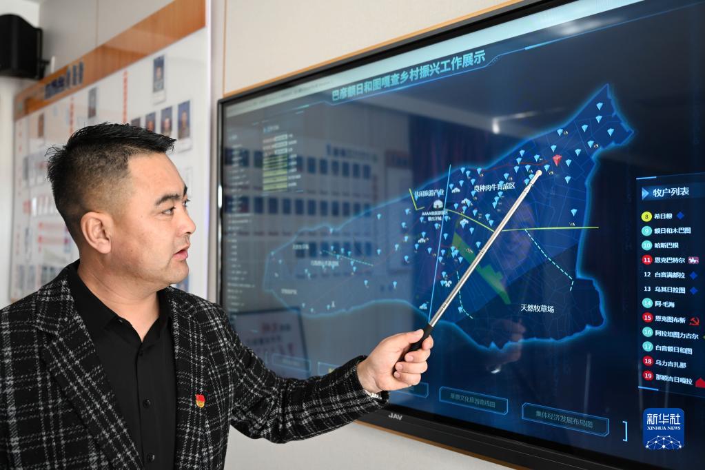 3月28日,在巴彥額日和圖嘎查黨群服務(wù)中心,嘎查黨支部書(shū)記寶音賀希格介紹轄區牧民情況。