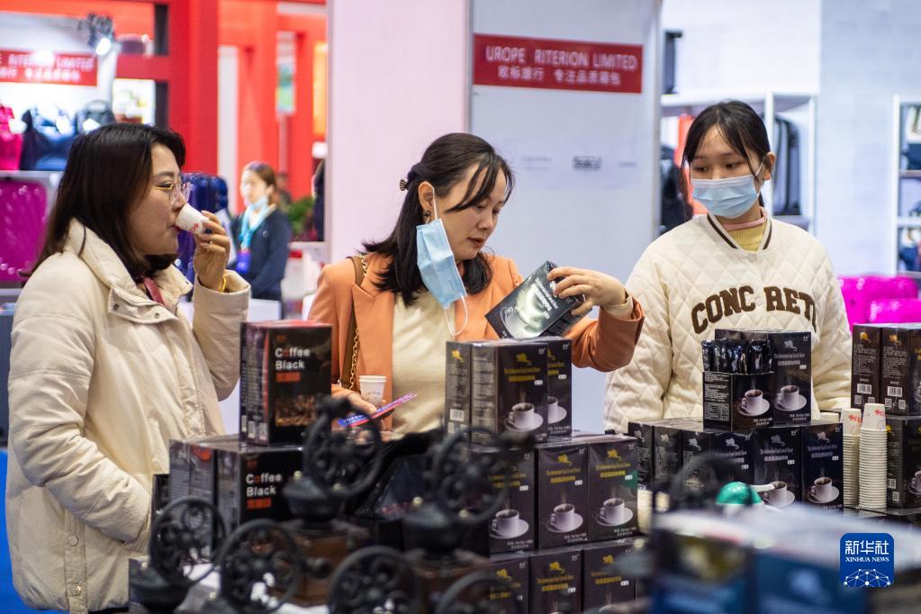 3月29日,在湖南國際會(huì )展中心,觀(guān)眾在選購展出的咖啡。