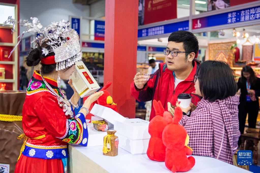 3月29日,在湖南國際會(huì )展中心,觀(guān)眾(中)在品嘗展出的酒水。