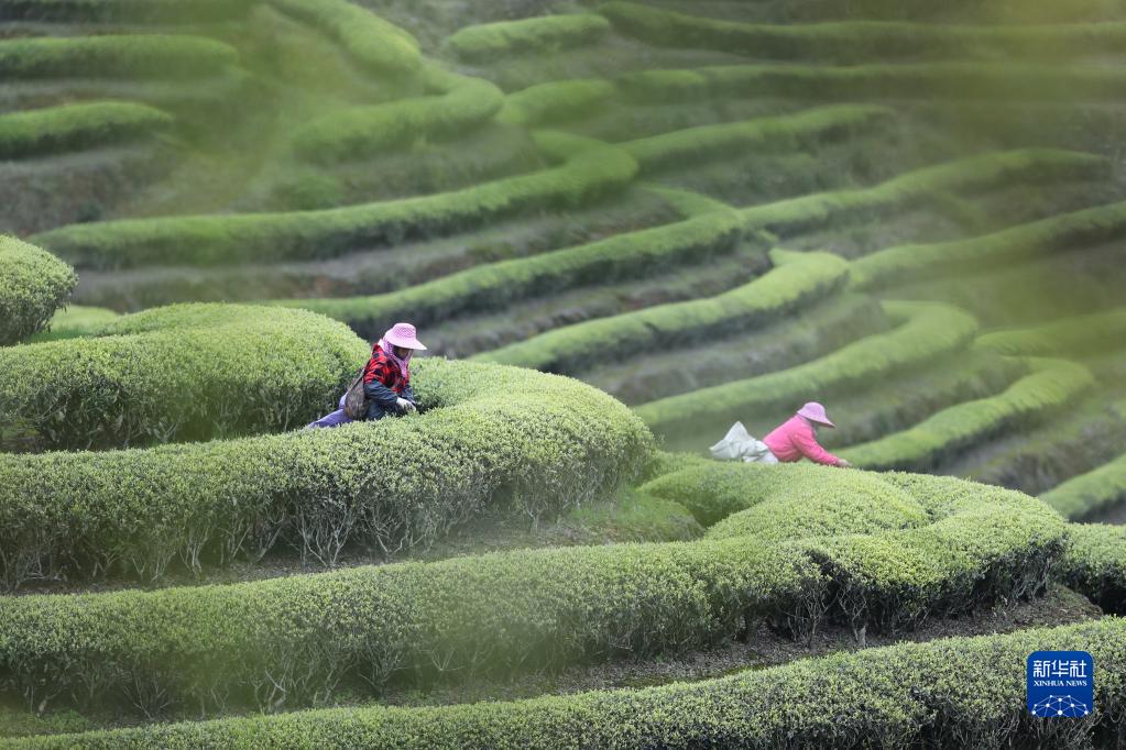 福建省連江縣長(cháng)龍鎮茶農在采摘春茶(3月28日攝)。