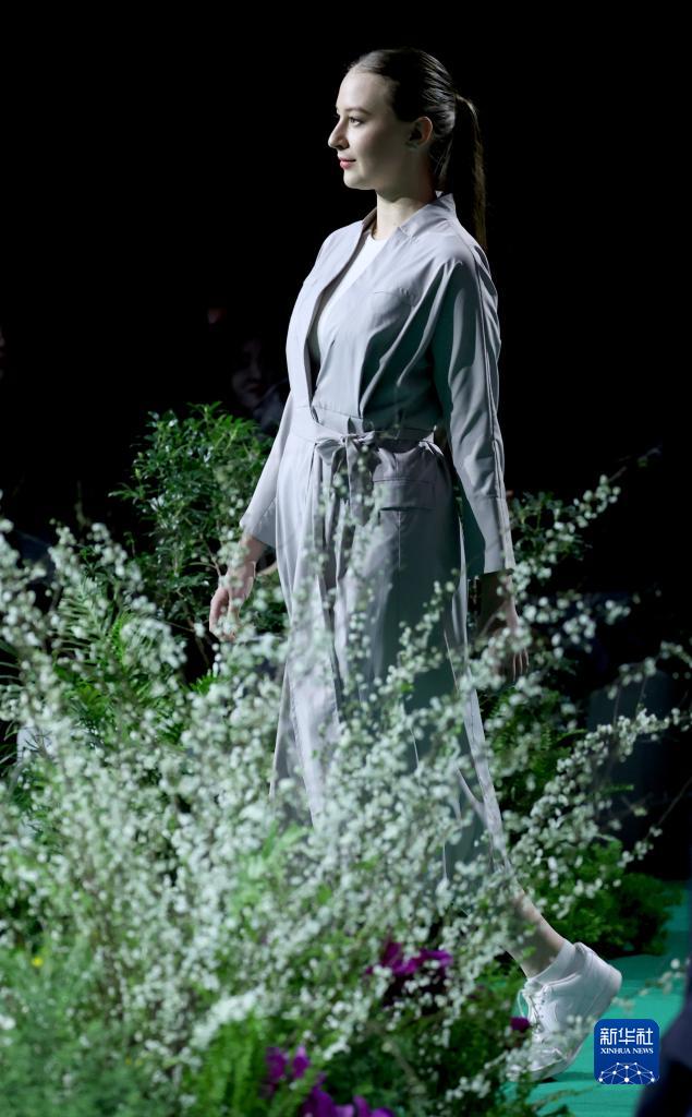 3月29日,模特在“綠色纖維制品可信平臺”發(fā)布會(huì )上展示可循環(huán)再利用的時(shí)裝。