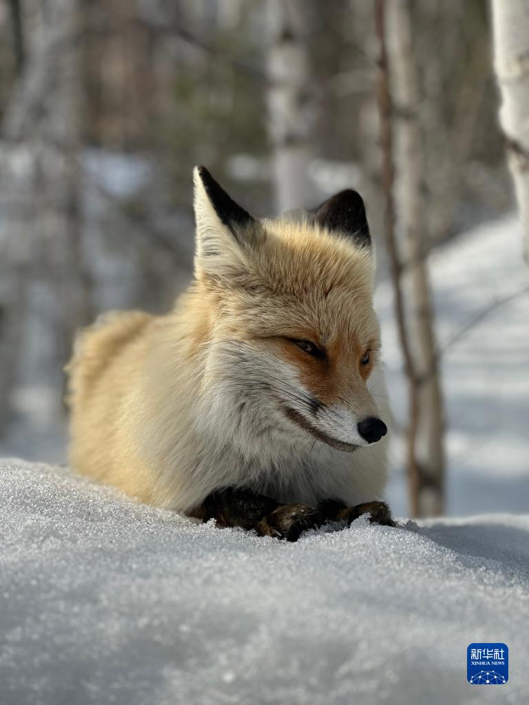 3月29日,一只赤狐在喀納斯風(fēng)景區休憩。