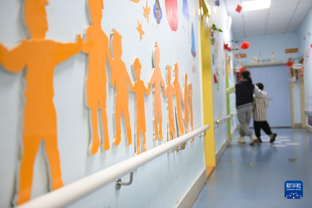 3月29日,一名老師帶著(zhù)自閉癥兒童進(jìn)教室上課。