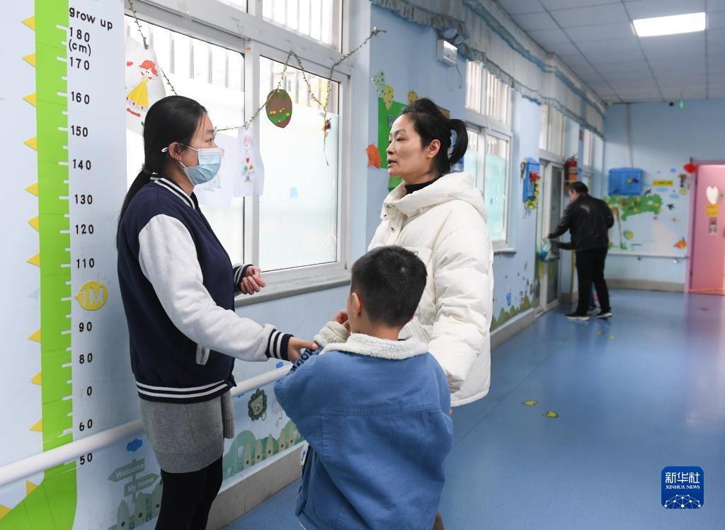 3月29日,一名家長(cháng)(左三)在課后向老師了解孩子的狀況。