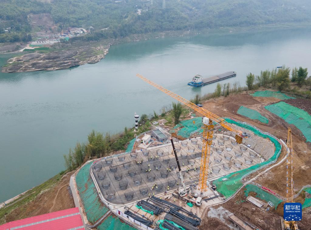 這是在重慶市涪陵區拍攝的石沱長(cháng)江大橋北岸主塔的施工現場(chǎng)(3月29日攝,無(wú)人機照片)。