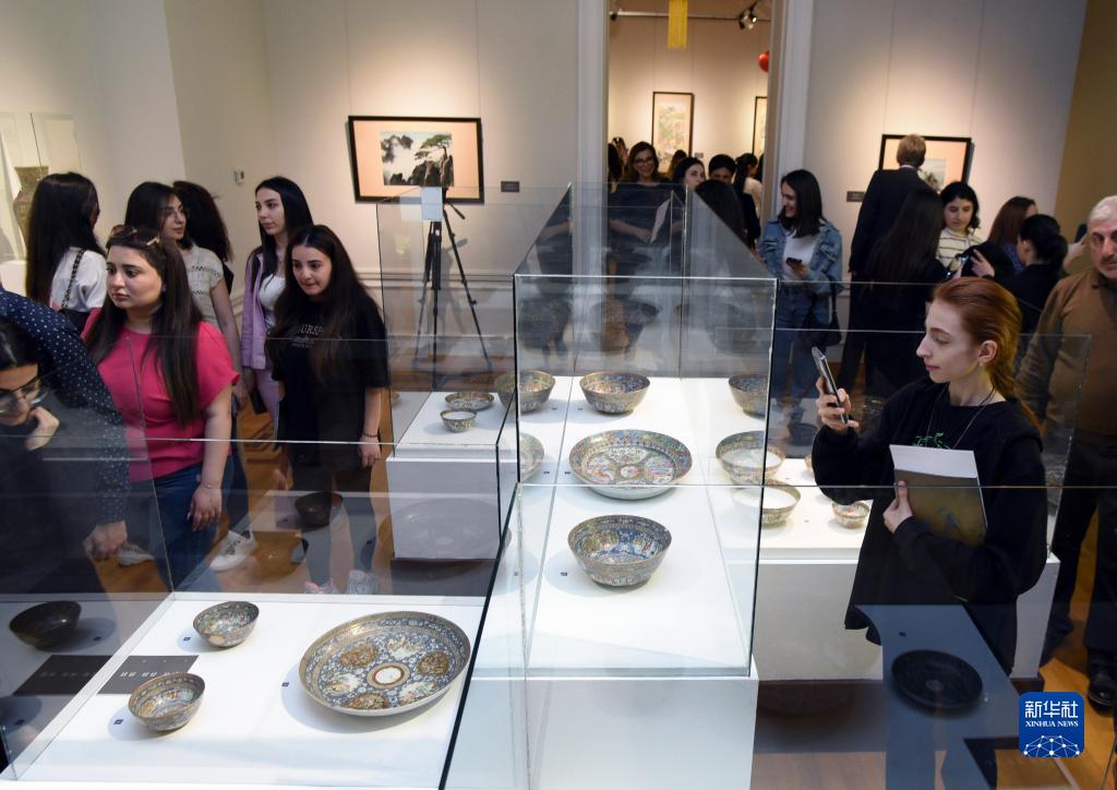 3月29日,人們在位于阿塞拜疆首都巴庫的阿塞拜疆國家藝術(shù)博物館觀(guān)看中國藝術(shù)品專(zhuān)題展。
