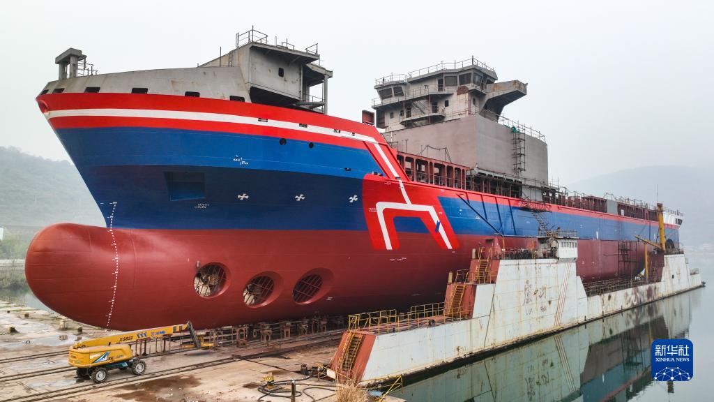3月29日,萬(wàn)噸級遠洋通信海纜鋪設船“龍吟9號”在江西九江市瑞昌市下水。