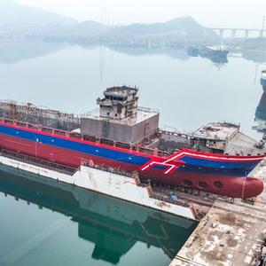 江西九江:萬(wàn)噸級遠洋通信海纜鋪設船下水