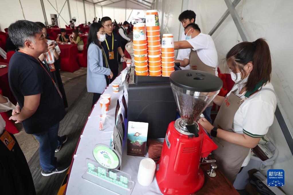 3月29日,工作人員在博鰲亞洲論壇新聞中心的餐廳內制作零碳咖啡。