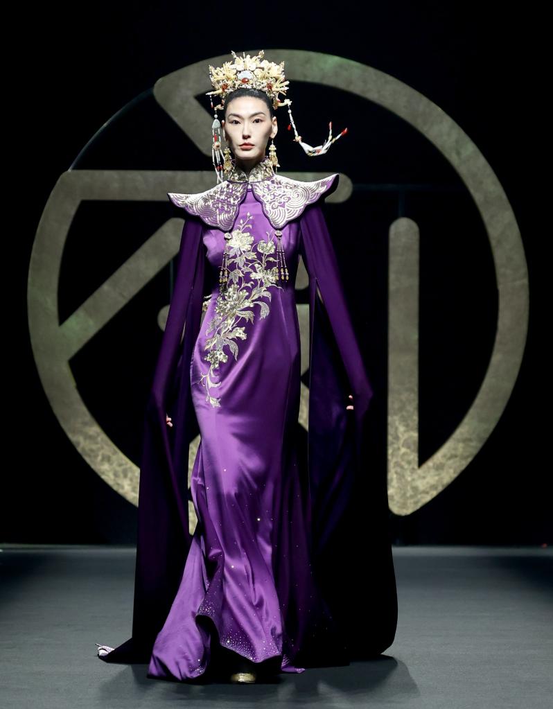 3月30日,在北京舉行的中國國際時(shí)裝周2023秋冬系列“六禮·張效奇”時(shí)裝發(fā)布上,模特展示時(shí)裝設計師張效奇設計的時(shí)裝。