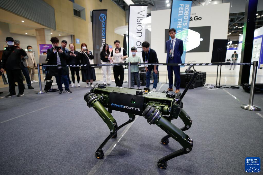 這是3月31日在韓國京畿道高陽(yáng)市韓國國際展覽中心的“2023首爾移動(dòng)出行展”上拍攝的機器人。