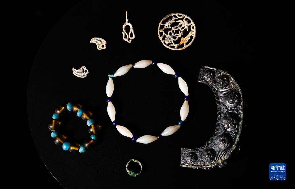 貴州貴安新區大松山墓群出土的精美裝飾品(3月30日攝)。