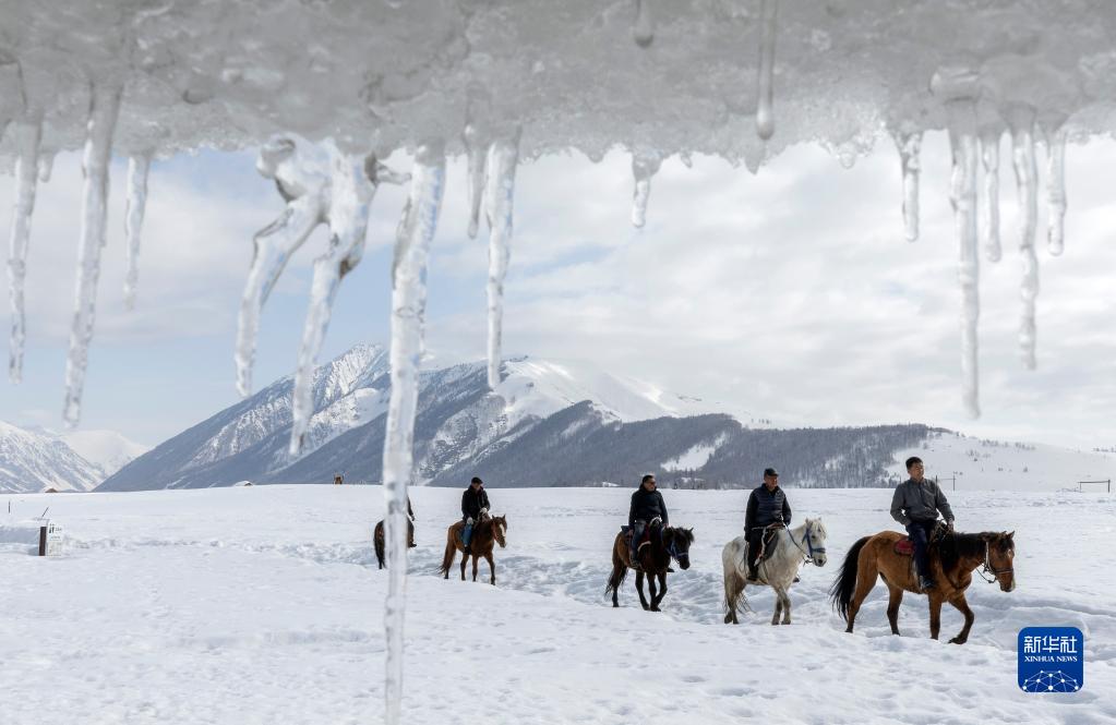 3月30日,蘇卡(右一)和馬隊成員騎馬上山。