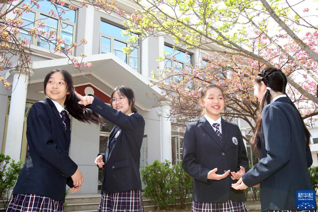 當日,北師大實(shí)驗華夏女子中學(xué)舉辦以“春和”為主題的第二屆“海棠詩(shī)會(huì )”。師生們選取有關(guān)“春天”“和煦”“生機”“美好”的詩(shī)歌,在校園的海棠樹(shù)下賞析吟誦,共享詩(shī)歌之美,傳承中華優(yōu)秀傳統文化。