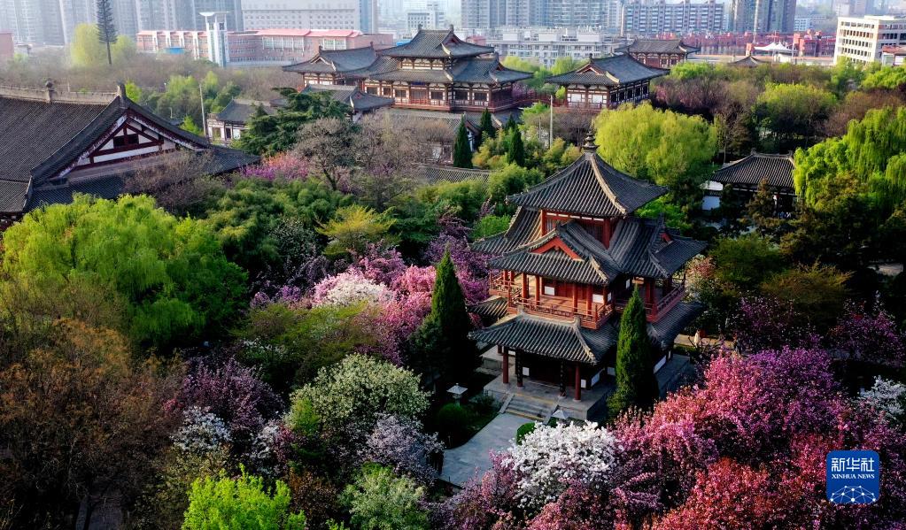 近日,陜西省西安市青龍寺遺址景區內的櫻花大面積開(kāi)放,如云似霞的花海與仿唐建筑群相互映襯,獨特的春日古典之美吸引大量游客賞花游覽。