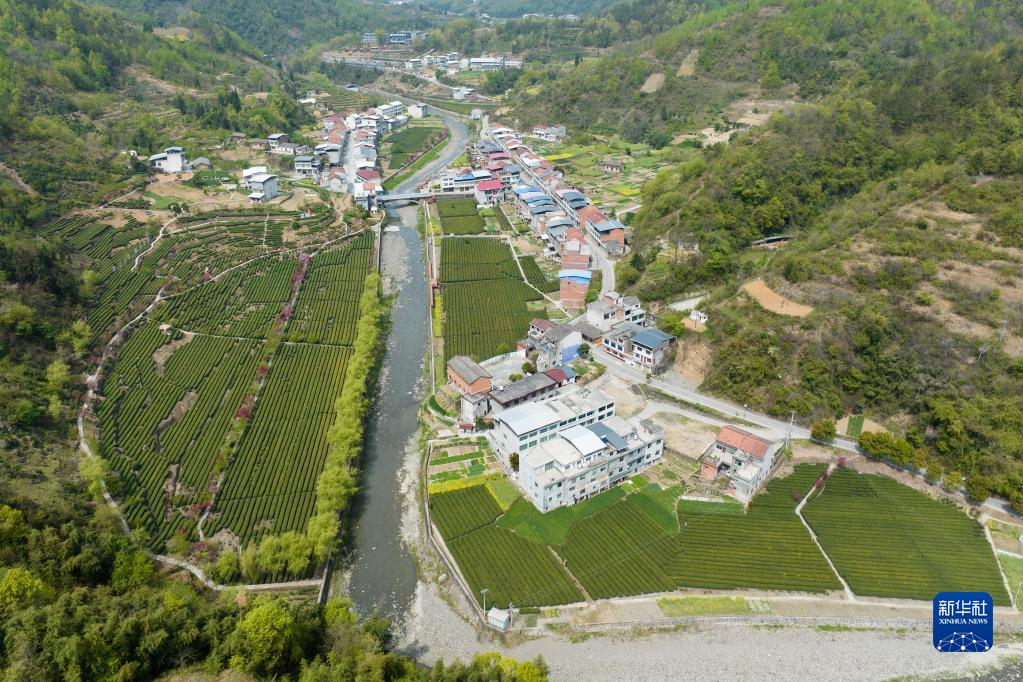 安康市漢濱區大竹園鎮茶園景色(3月31日攝,無(wú)人機照片)。