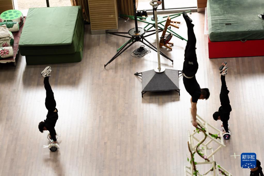 3月31日,演員們在位于江蘇省鹽城市建湖縣的江蘇省雜技團訓練。