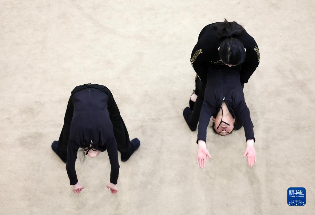 3月31日,演員們在位于江蘇省鹽城市建湖縣的江蘇省雜技團訓練。