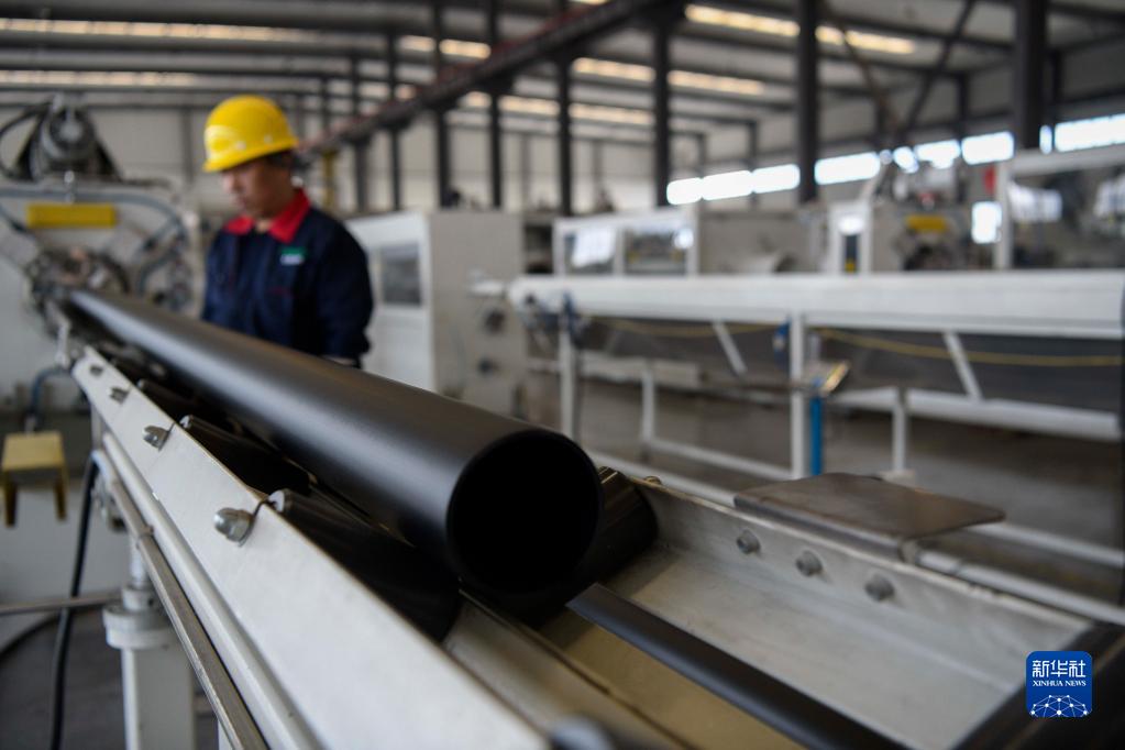 4月2日,在承德縣高新技術(shù)產(chǎn)業(yè)開(kāi)發(fā)區一家環(huán)保管材生產(chǎn)企業(yè),工人在生產(chǎn)車(chē)間忙碌。