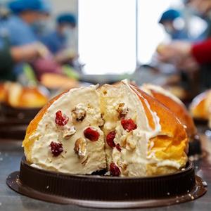 咬一口“塔城奶酪包”,面包的醇香、絲滑的奶香以及堅果的脆香、干果的果香在口腔中碰撞交融,最終形成濃郁的甜香,讓人欲罷不能。