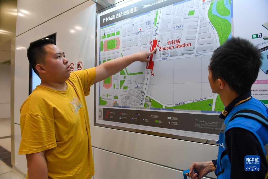 4月2日,到達目的地以后,黃志能(左)告訴爸爸黃少禮應該走哪個(gè)出站口。黃志能腦子里就像有一張地鐵圖,兩人一起坐地鐵時(shí)基本不用依靠導航。