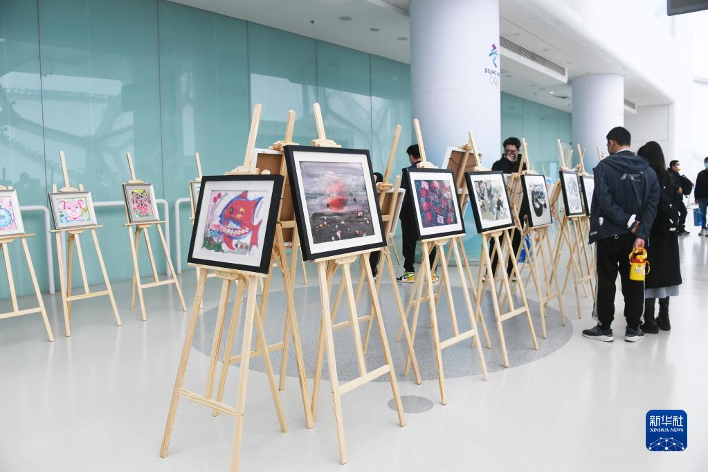 4月2日,市民在國家游泳中心“水立方”參觀(guān)融合兒童畫(huà)展。
