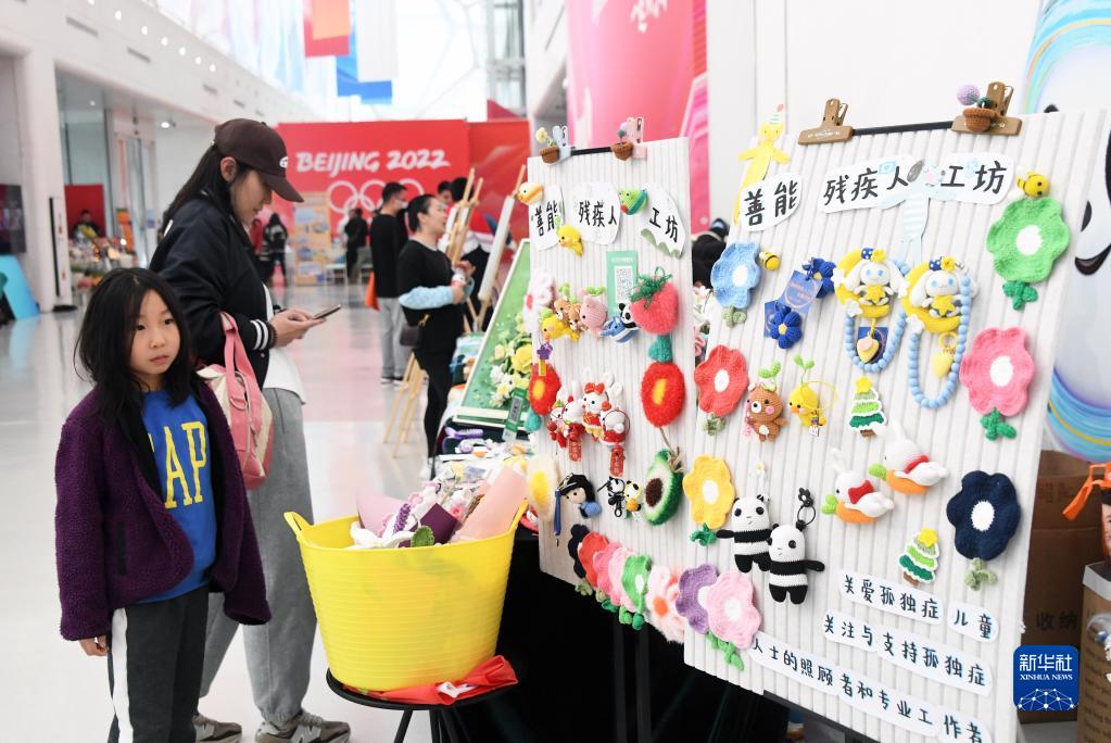 4月2日在國家游泳中心“水立方”拍攝的愛(ài)心市集。