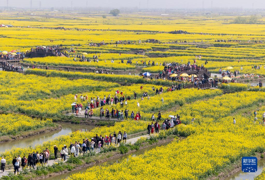 4月2日,游客在江蘇省興化市千垛景區踏青賞花。