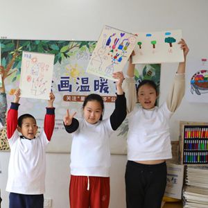 4月2日,在關(guān)注“星星的孩子”公益捐助活動(dòng)上,幾名孤獨癥兒童展示畫(huà)作。