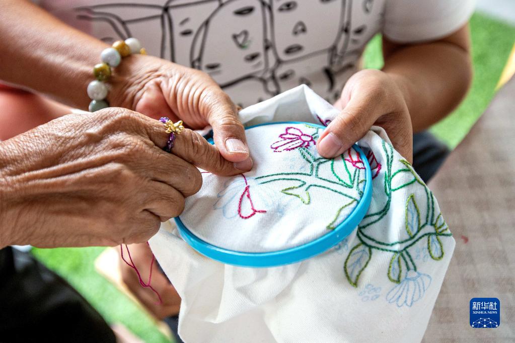 4月2日,在位于曼谷的泰國孤獨癥職業(yè)中心,一名孤獨癥患者學(xué)習刺繡。