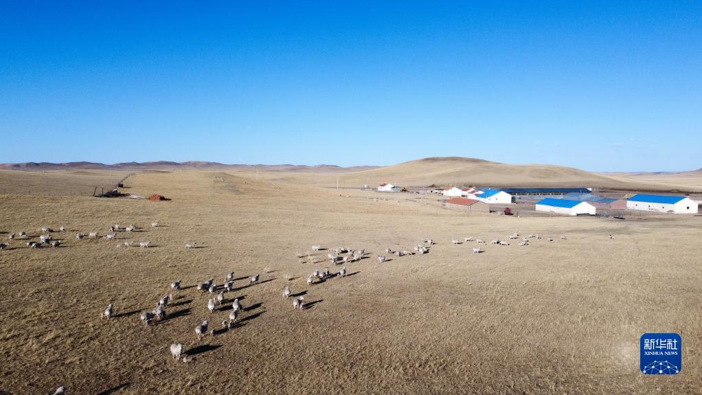 3月28日拍攝的朝克德力根家的房子和羊群(無(wú)人機照片)。
