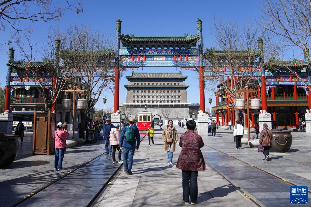 游客在正陽(yáng)門(mén)南的前門(mén)大街參觀(guān)游覽(3月27日攝)。新華社記者 鞠煥宗 攝