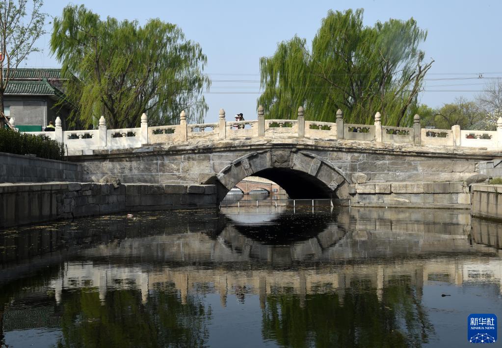 北京萬(wàn)寧橋(3月30日攝)。萬(wàn)寧橋位于北京地安門(mén)外大街中部、什剎海東岸,是北京中軸線(xiàn)上最古老的橋梁,至今已有700多年歷史。作為北京中軸線(xiàn)與大運河玉河段的交匯點(diǎn),自元代始建起,萬(wàn)寧橋一直承擔著(zhù)南北交通的重要功能。新華社記者 羅曉光 攝