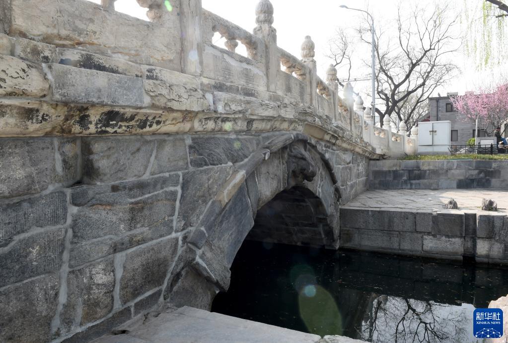 北京萬(wàn)寧橋(3月30日攝)。萬(wàn)寧橋位于北京地安門(mén)外大街中部、什剎海東岸,是北京中軸線(xiàn)上最古老的橋梁,至今已有700多年歷史。作為北京中軸線(xiàn)與大運河玉河段的交匯點(diǎn),自元代始建起,萬(wàn)寧橋一直承擔著(zhù)南北交通的重要功能。新華社記者 羅曉光 攝