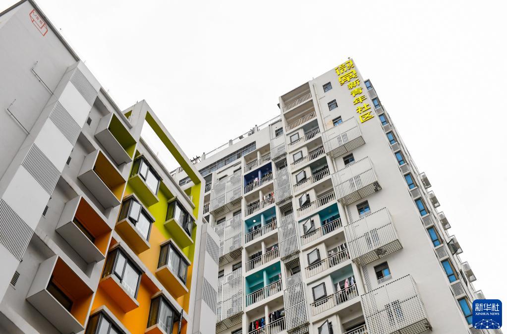 4月2日,在深圳市龍華區元芬村拍攝的改造后的青年公寓外立面。